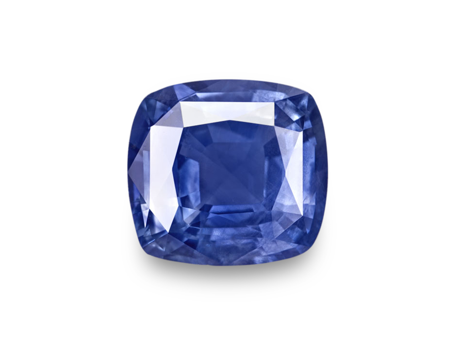 This stunning natural & unheated/untreated cushion-cut sapphire showcases a lovely cornflower blue color and velvety luster, representing the finest material from Ceylon (Sri Lanka). It also has a soft glow, characteristic of famed sapphires from the Kashmir valley, but sometimes also seen in Ceylonese sapphires. The mesmerizing color, coupled with eye-clean clarity, make this sapphire a rare find. |