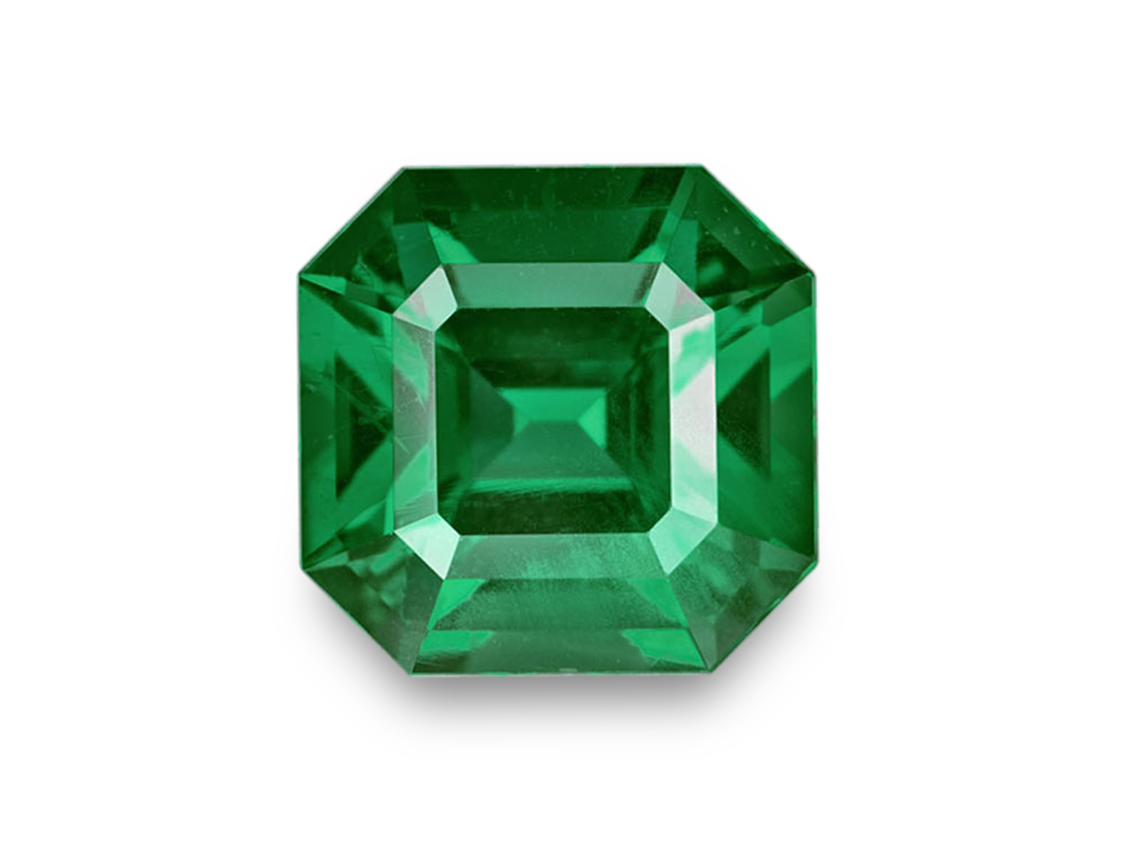 Due to their natural crystal shape, emeralds are commonly cut as rectangular or squarish step cuts known as "emerald-cuts." The unique look of the emerald-cut is created by its large, open table and the step cuts of its pavilion. Emerald-cut emeralds produce a "hall of mirrors" effect with the interplay of light and dark planes. The long lines and dramatic flashes of light give emerald-cut emeralds, such as this one, an elegant appeal.