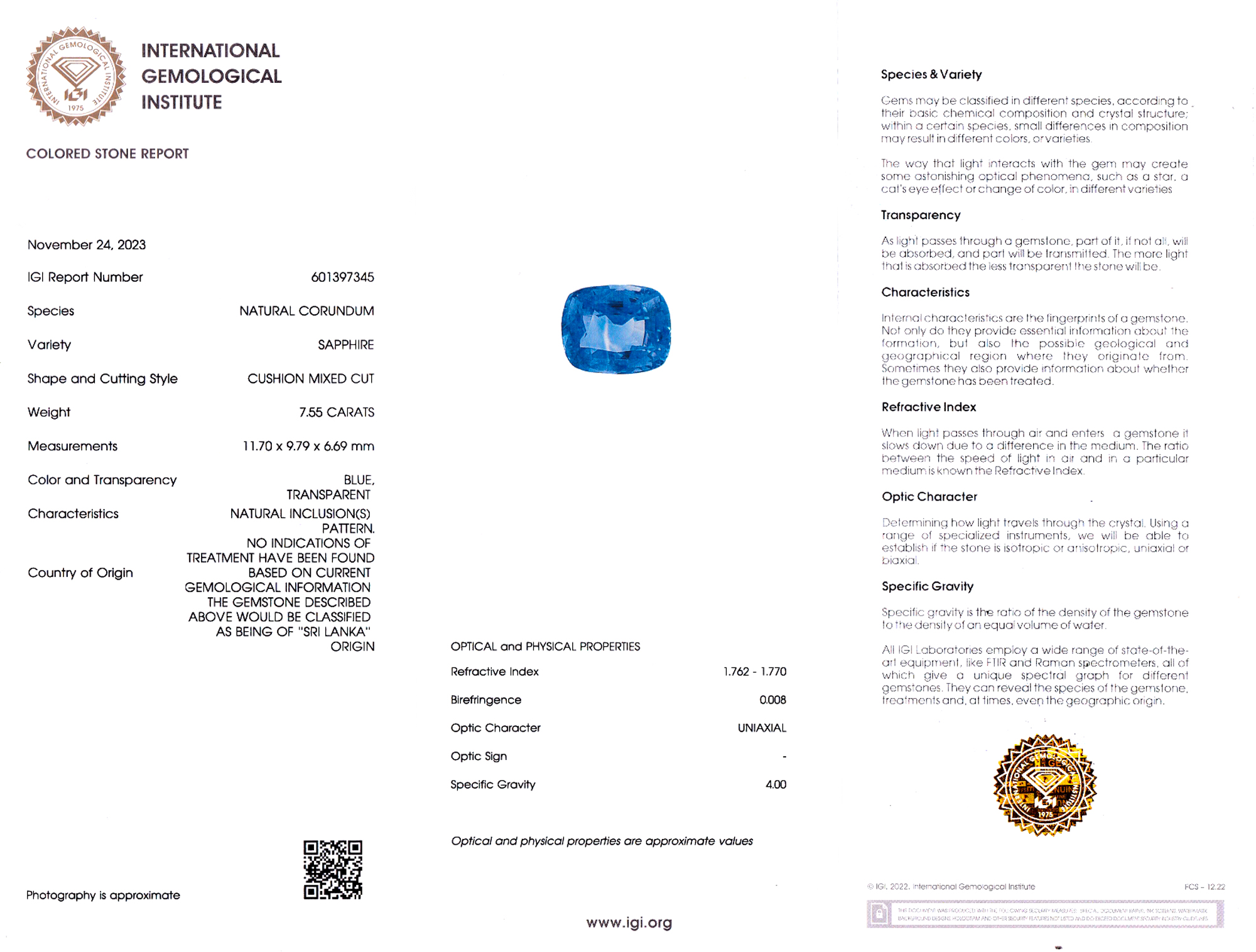 International Gemological Institute report # 601397345