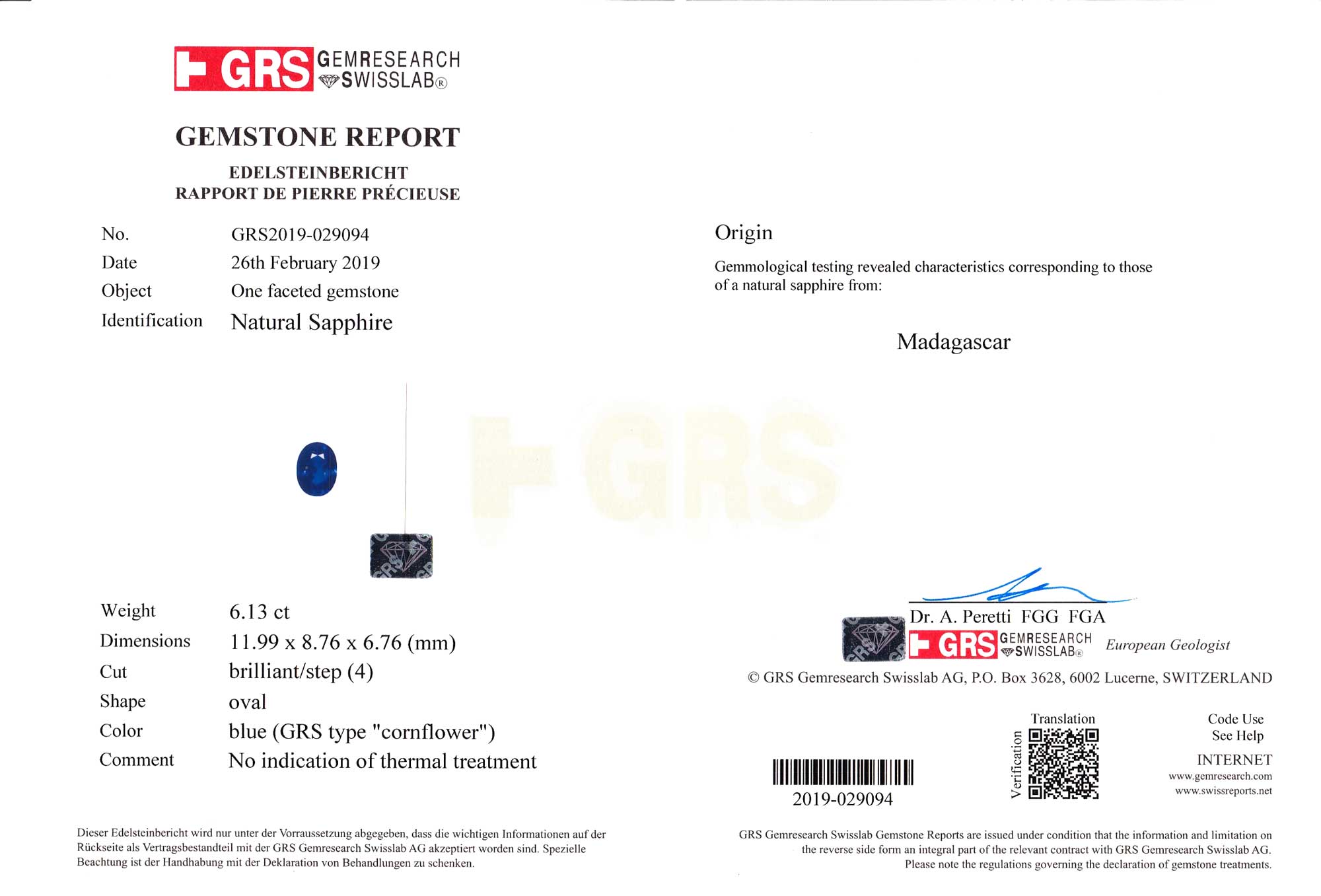 GRS Gem Research Swisslab report # GRS2019-029094