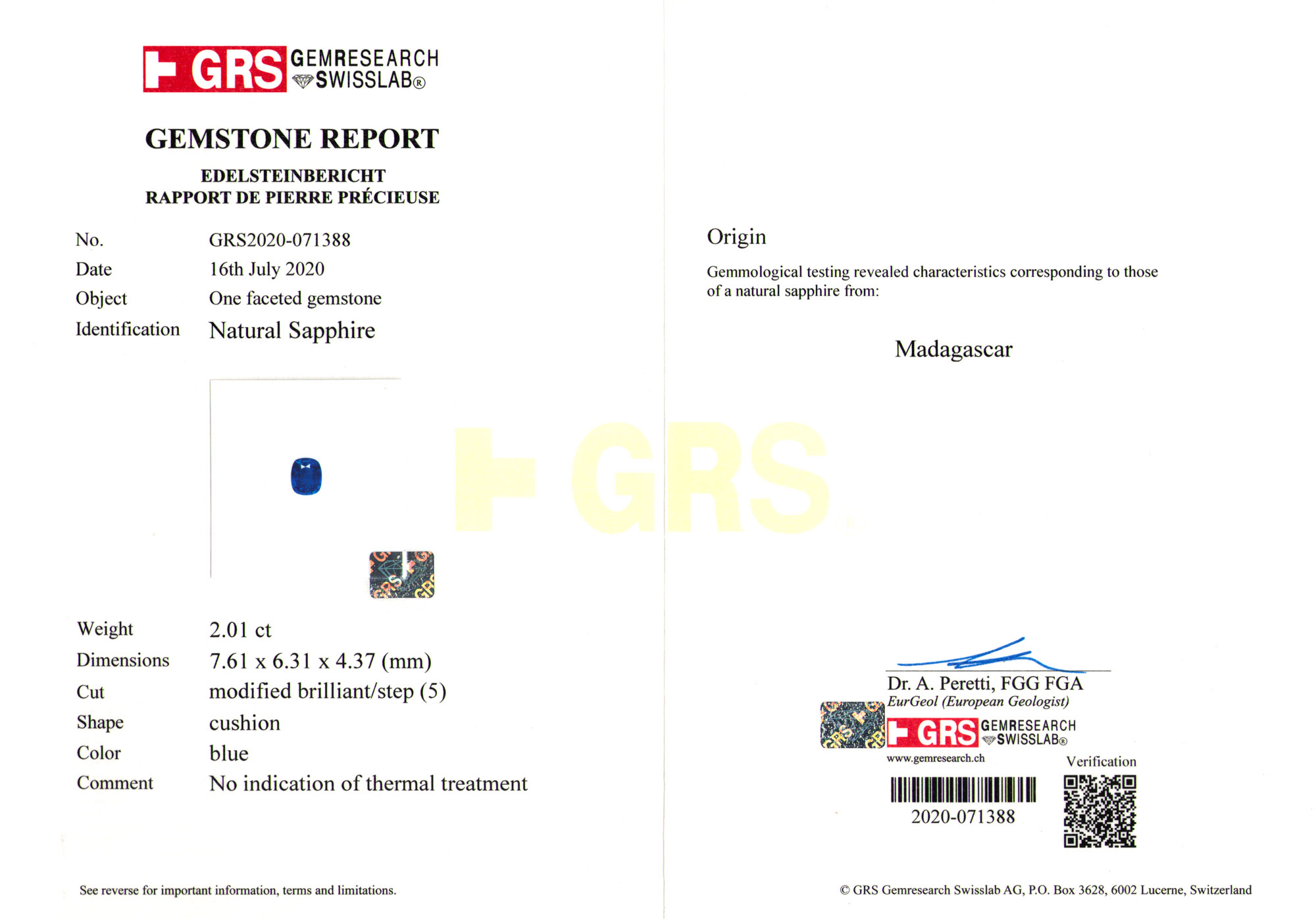 GRS Gem Research Swisslab report # GRS2020-071388