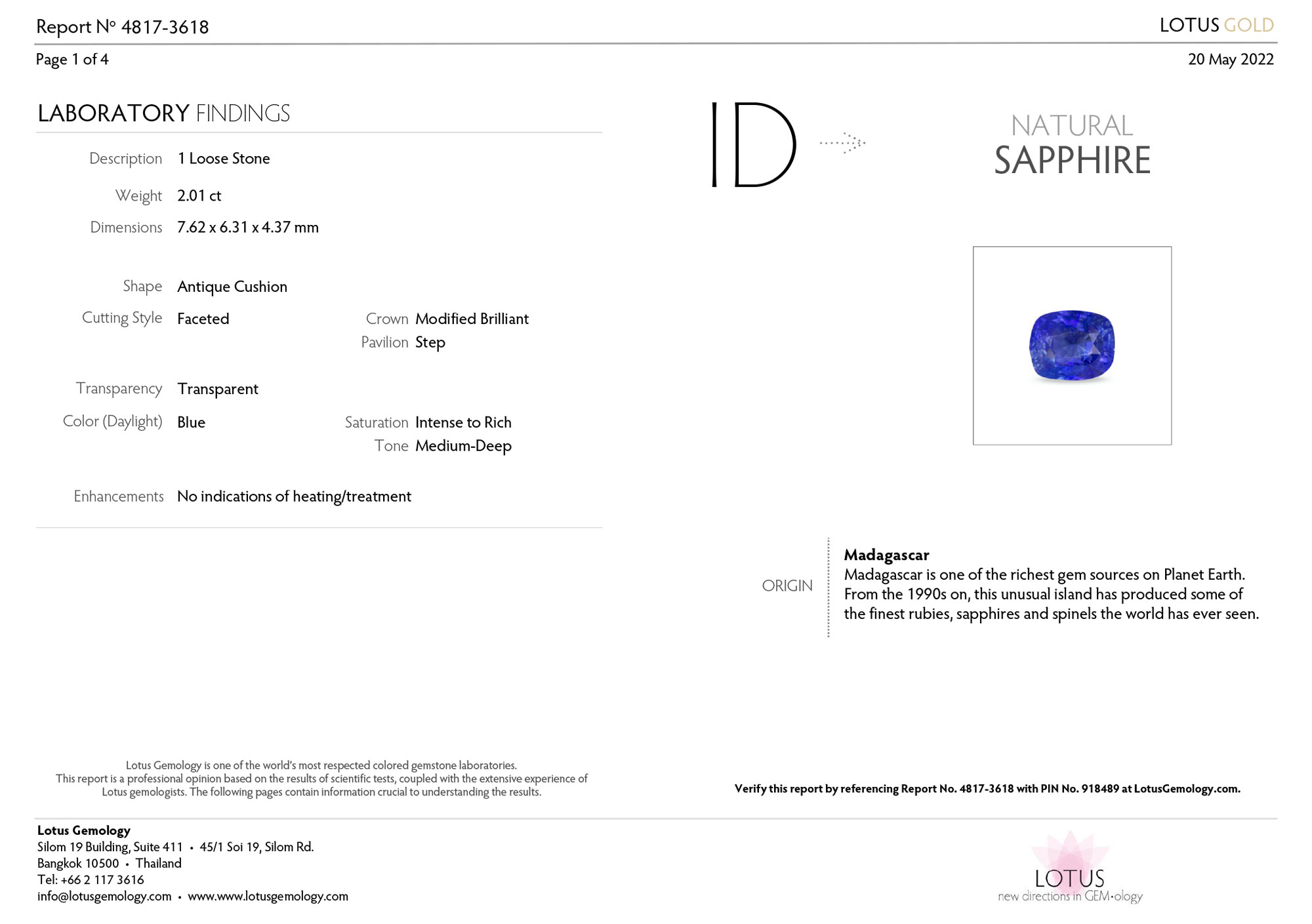 Lotus Gemology report # 4817-3618