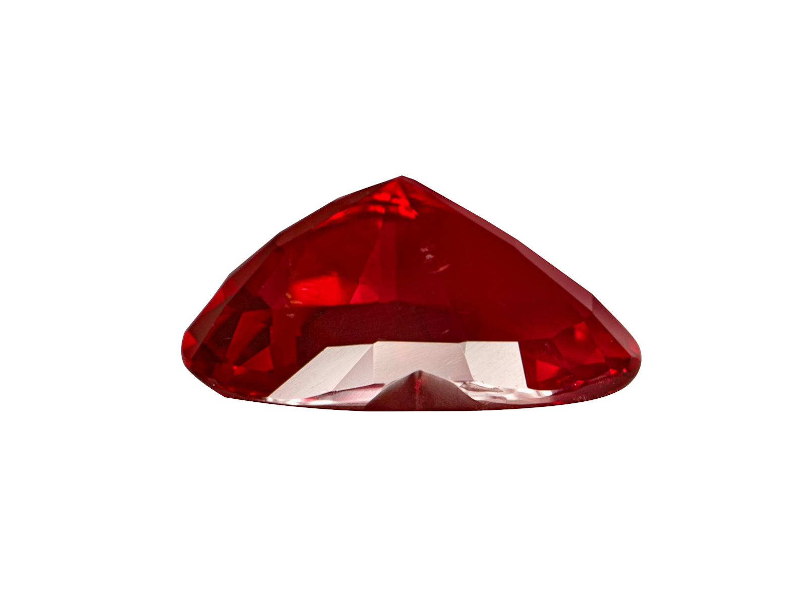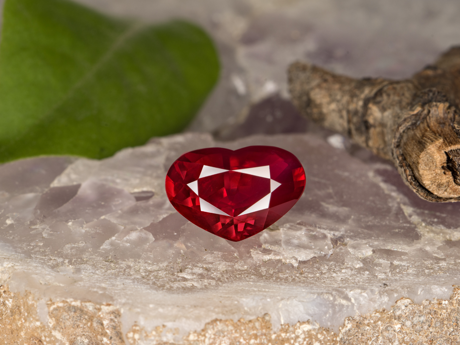 "Vena Amoris" is a Latin phrase meaning "Vein of Love." The traditional belief is that this vein runs directly from the heart to the fourth finger of the left hand, which is one of the reasons why bridal rings are placed there. Imagine, then, the symbolism of this unusual, modified heart-shaped "pigeon's blood" ruby as an engagement ring, worn with the narrow end pointing toward the vein. Placed into a setting worthy of its fantastical shape, this ruby is sure to win her heart.