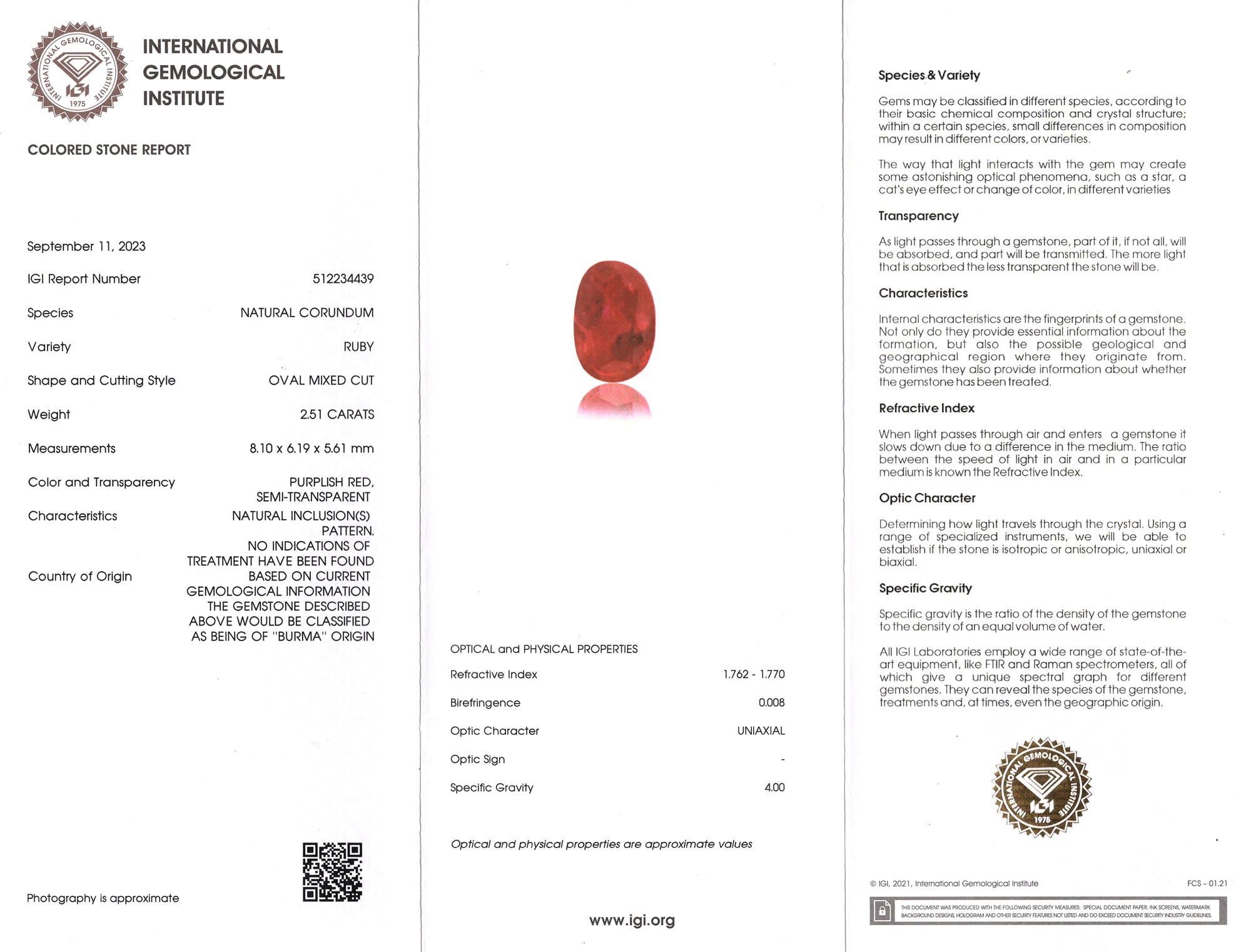 This item is accompanied by the following gemological reports. We will ship the original reports along with the item.