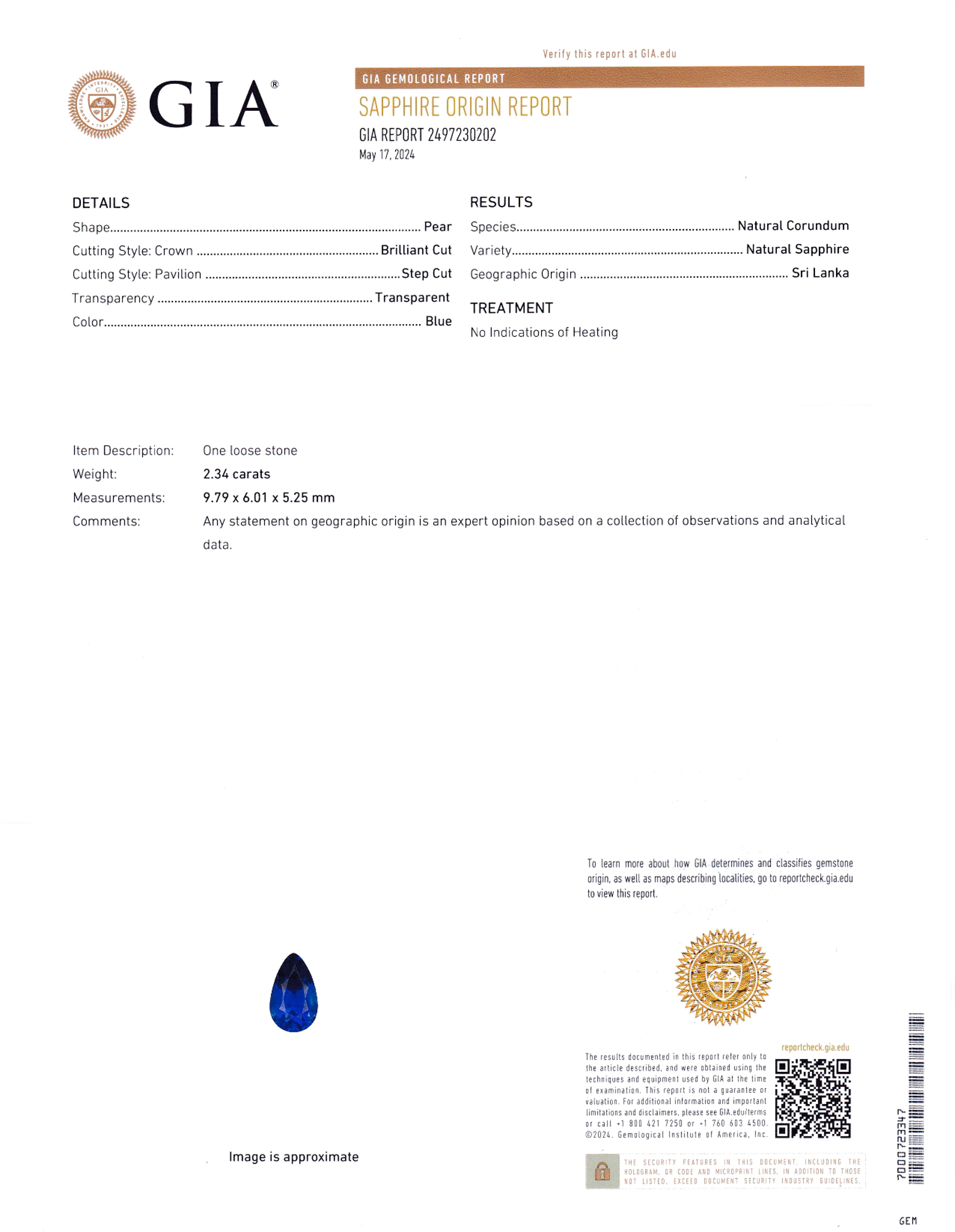 Gemological Institute of America report # 2497230202