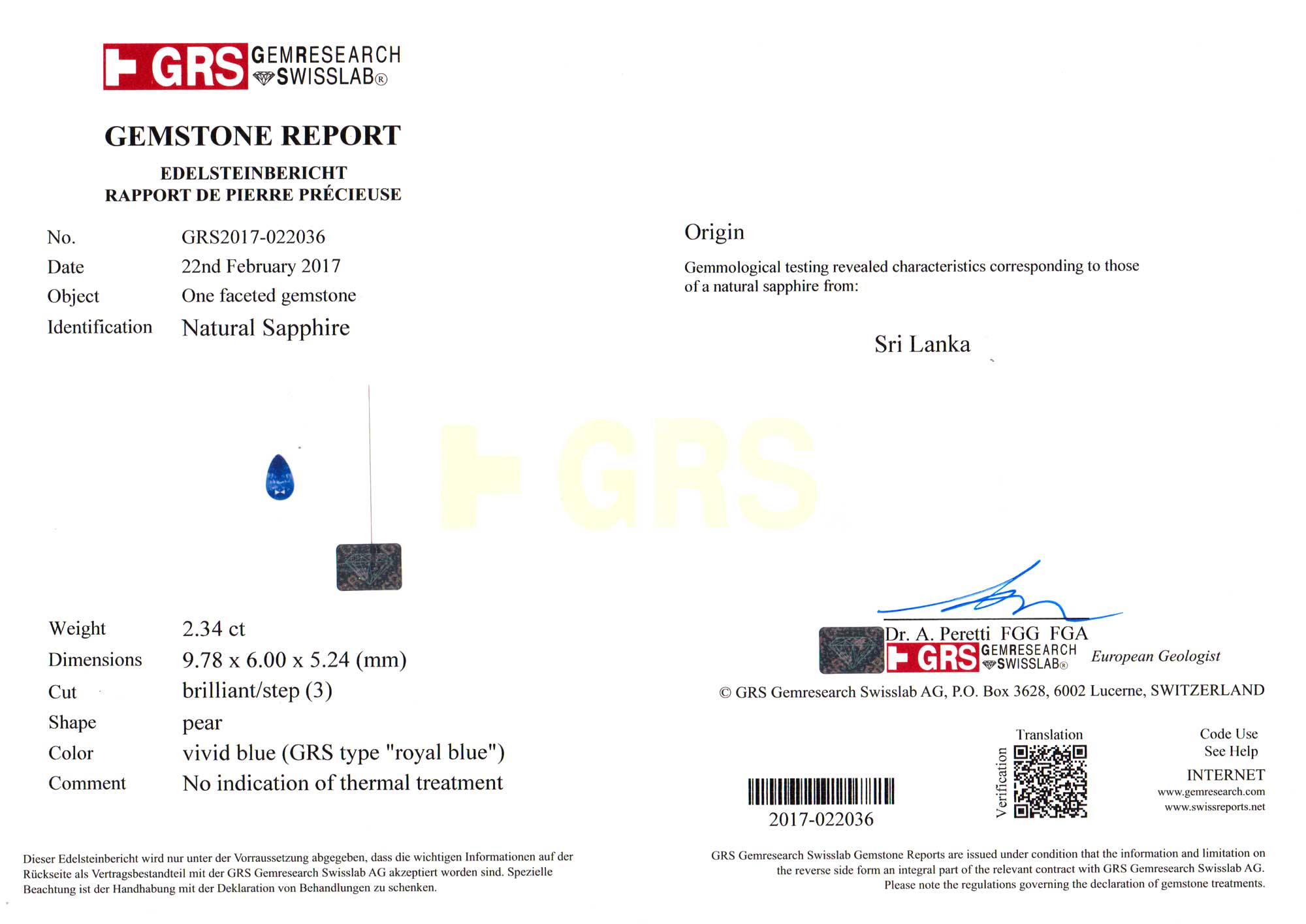 GRS Gem Research Swisslab report # GRS2017-022036