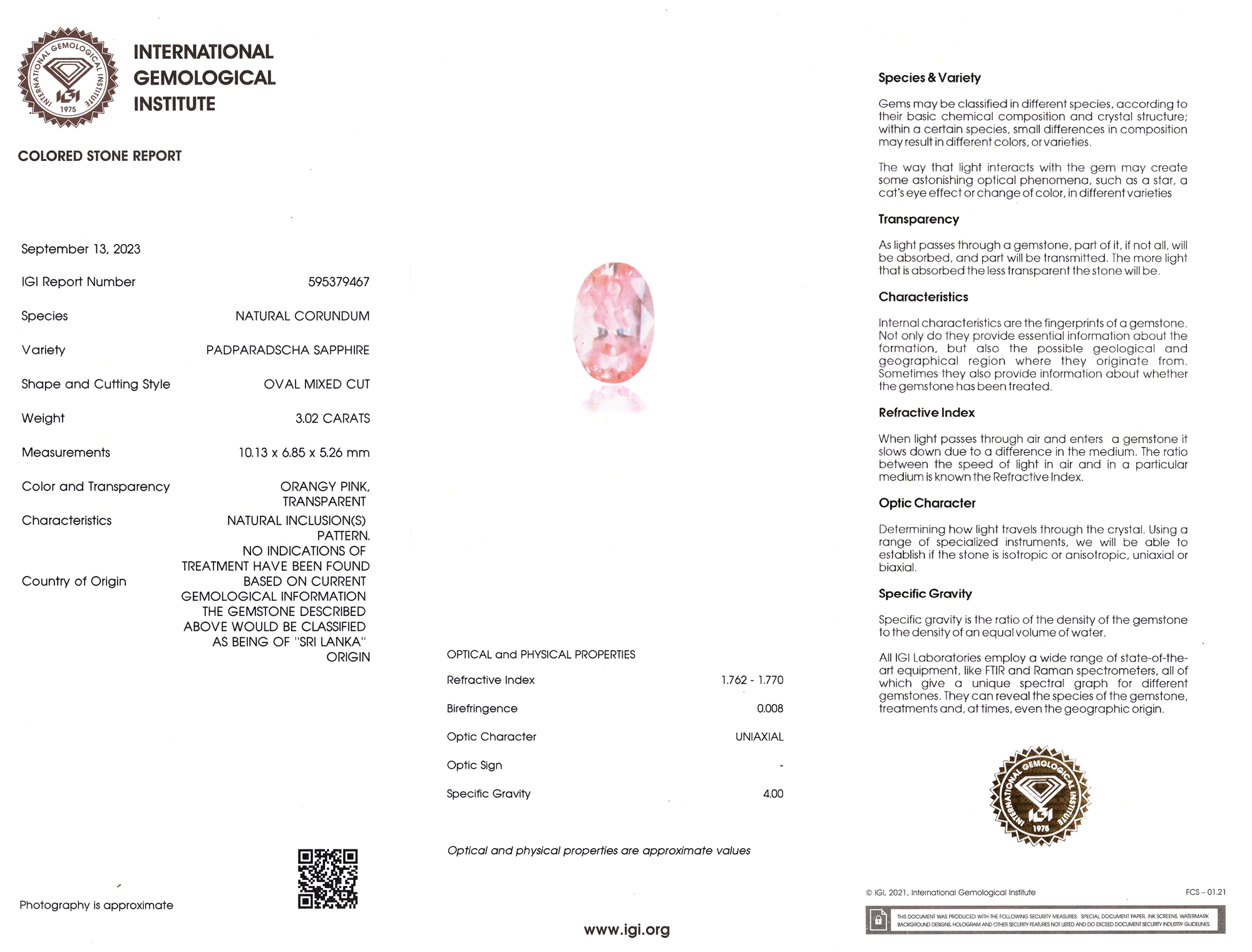 International Gemological Institute report # 595379467