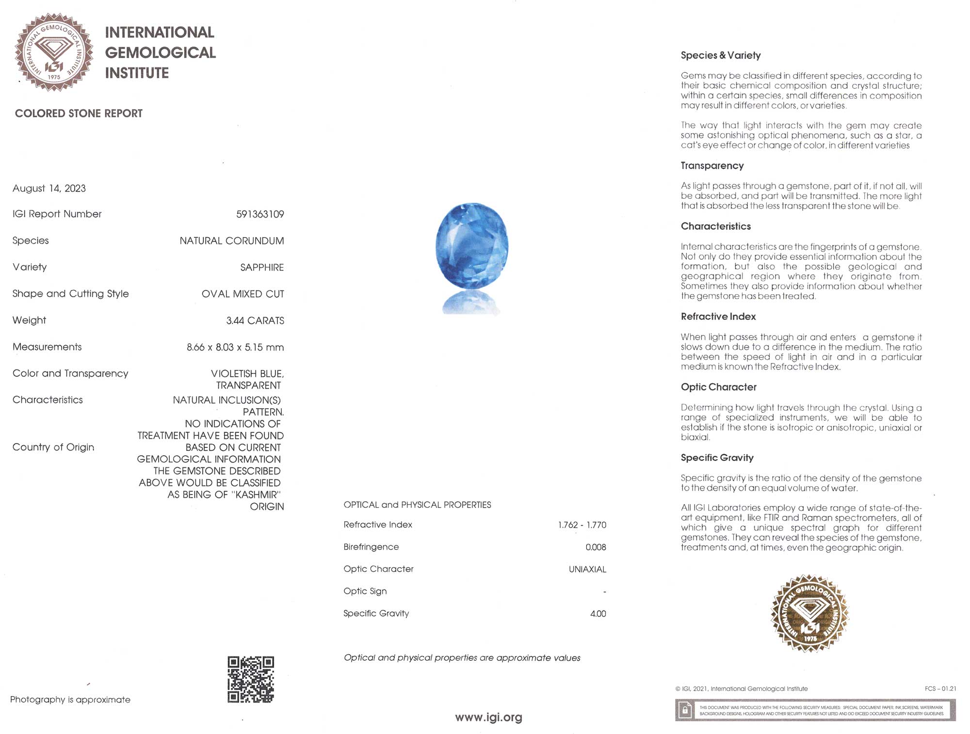 This item is accompanied by the following gemological reports. We will ship the original reports along with the item.