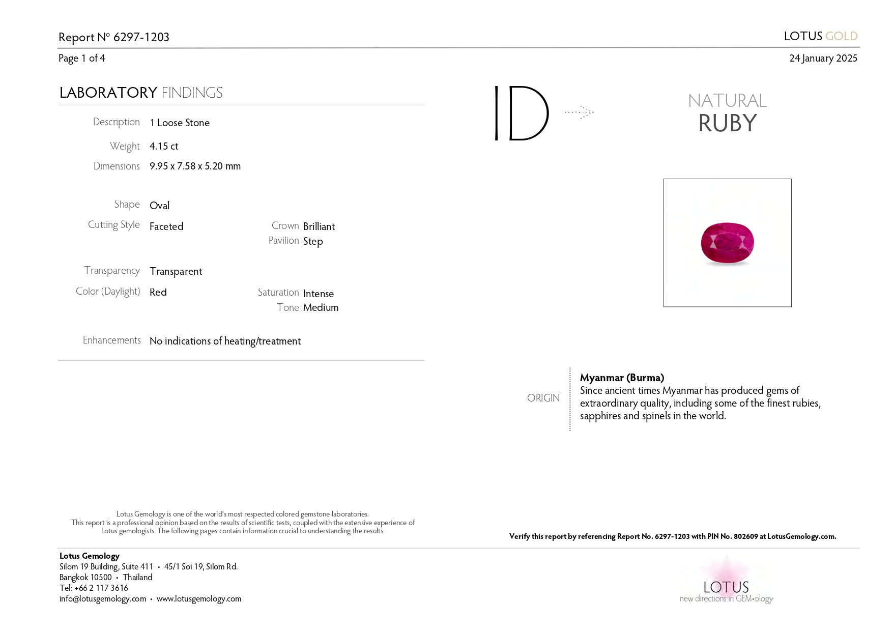 Lotus Gemology report # 6297-1203