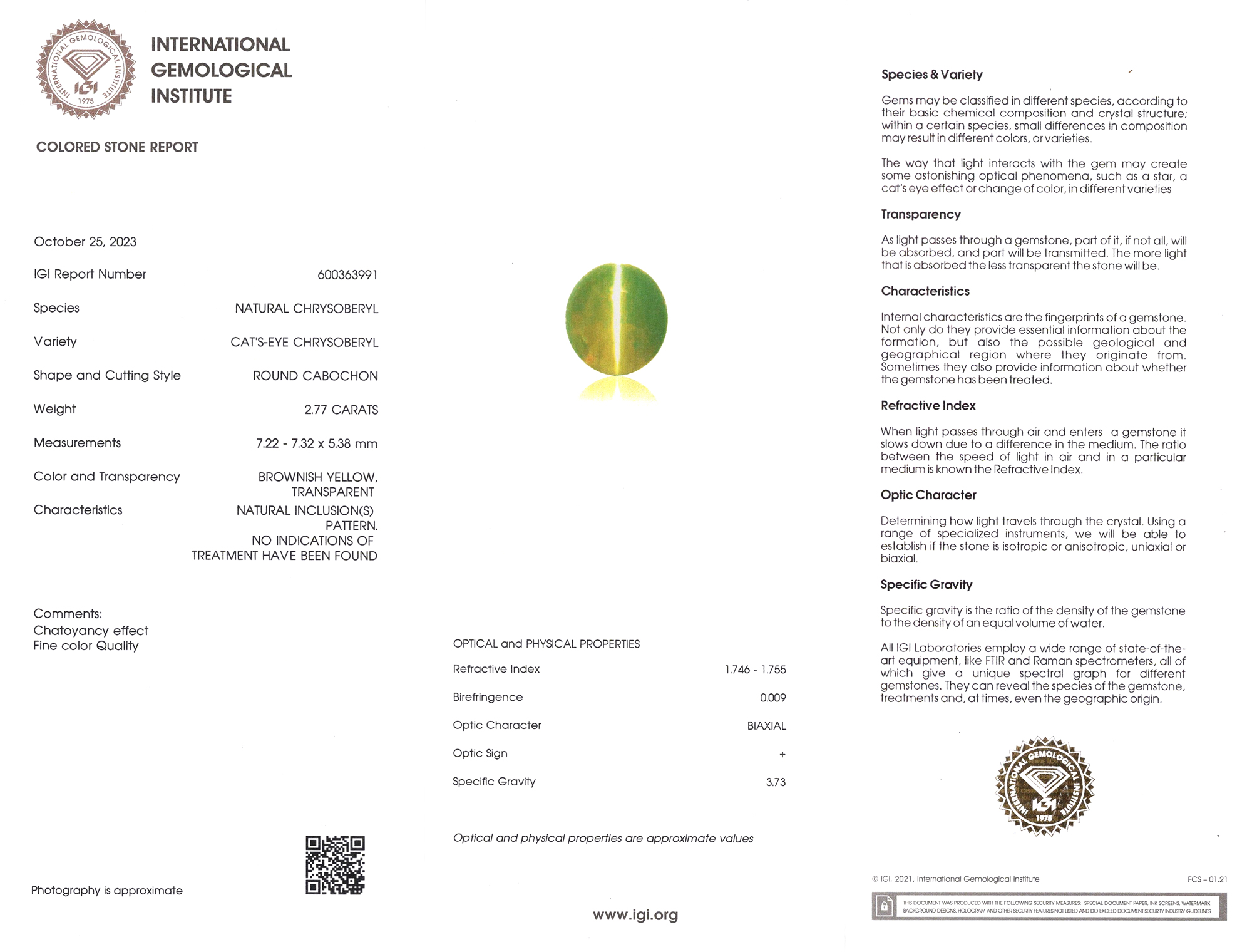 International Gemological Institute report # 600363991
