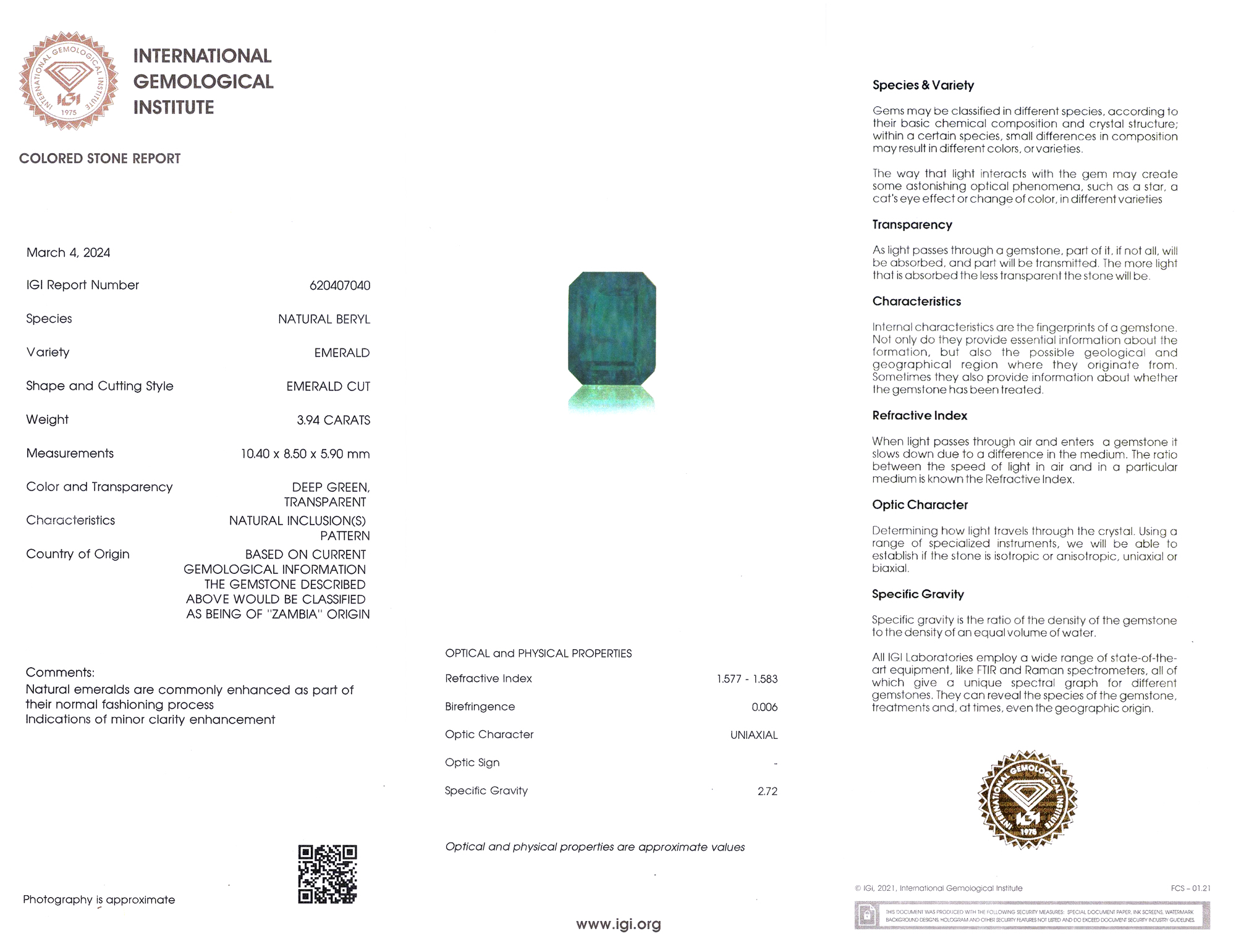 This item is accompanied by the following gemological report. We will ship the original report along with the item.