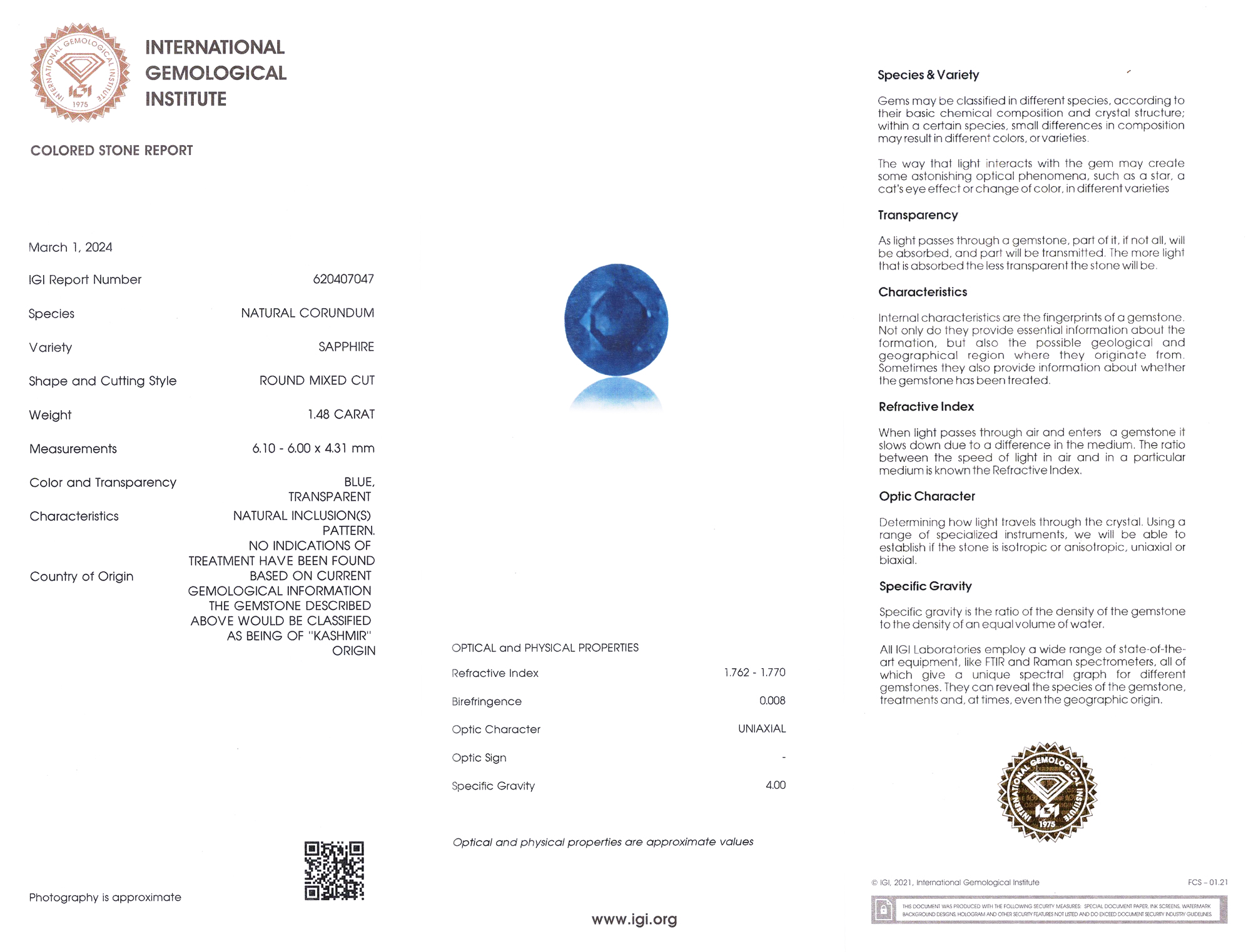This item is accompanied by the following gemological report. We will ship the original report along with the item.
