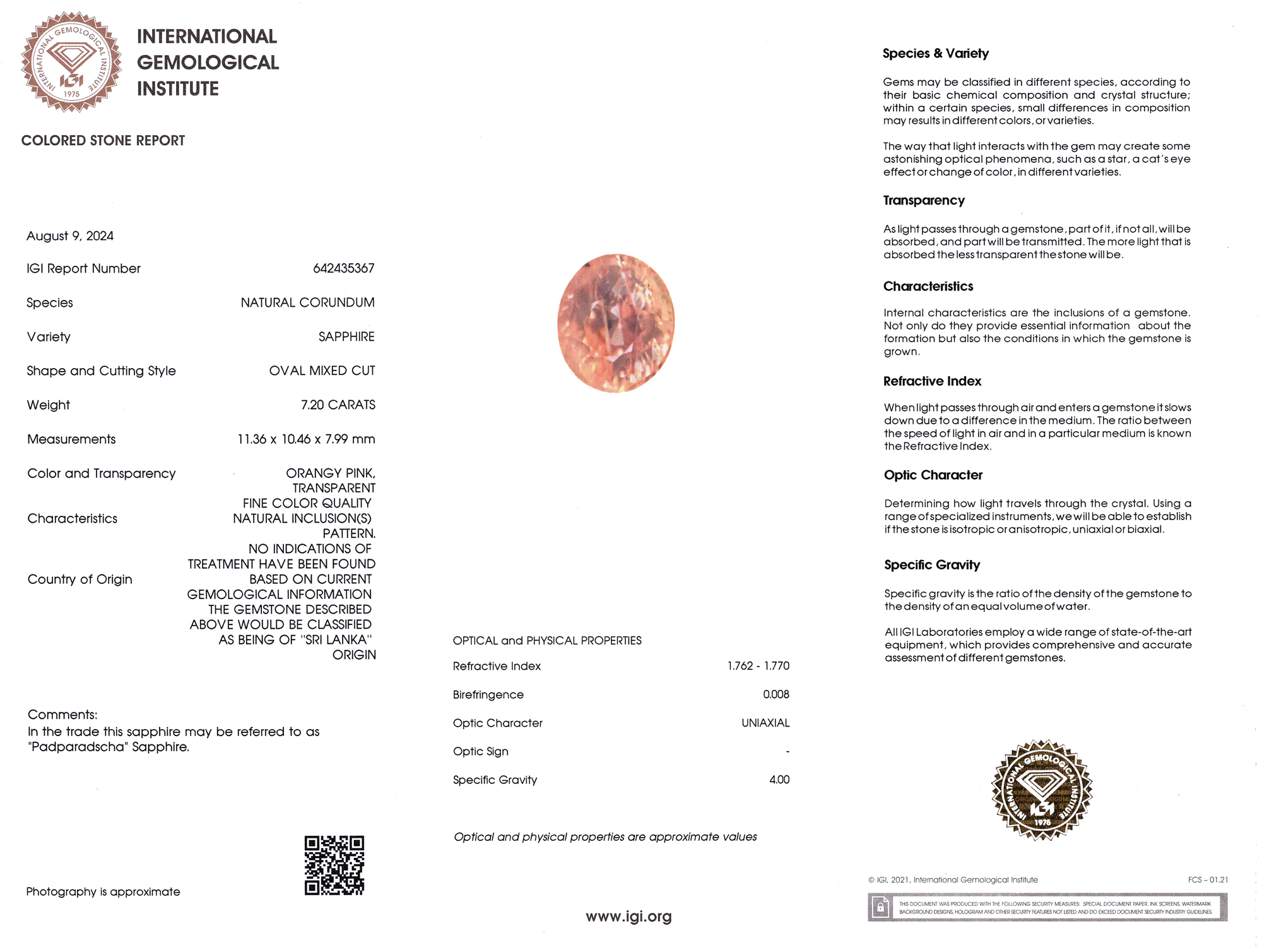This item is accompanied by the following gemological reports. We will ship the original reports along with the item.