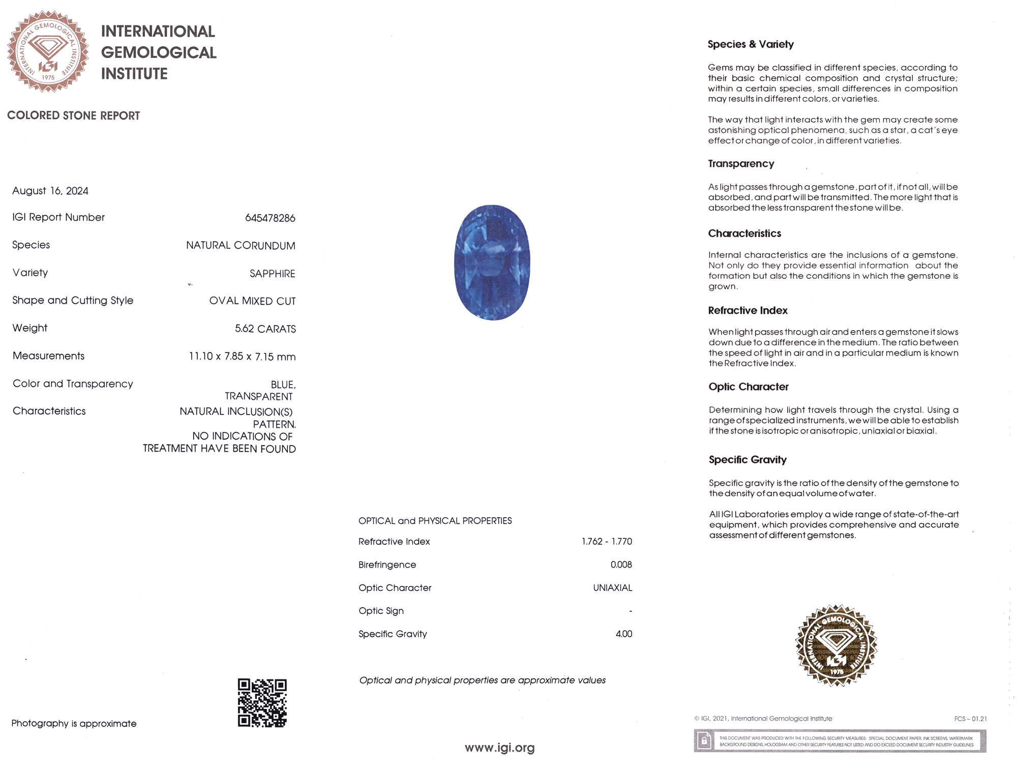 This item is accompanied by the following gemological report. We will ship the original report along with the item.