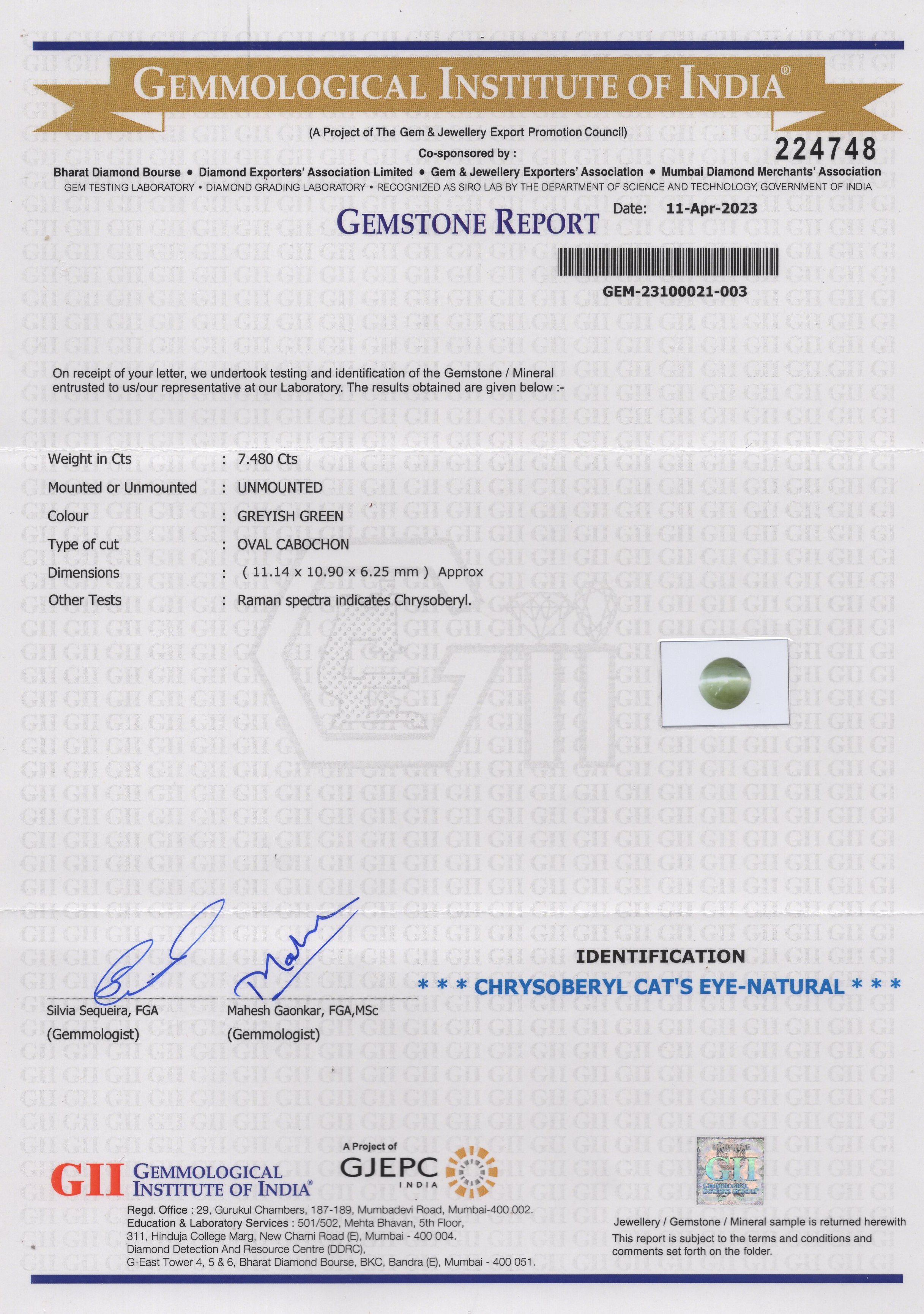 7.48 Ct. Chrysoberyl Cat's Eye