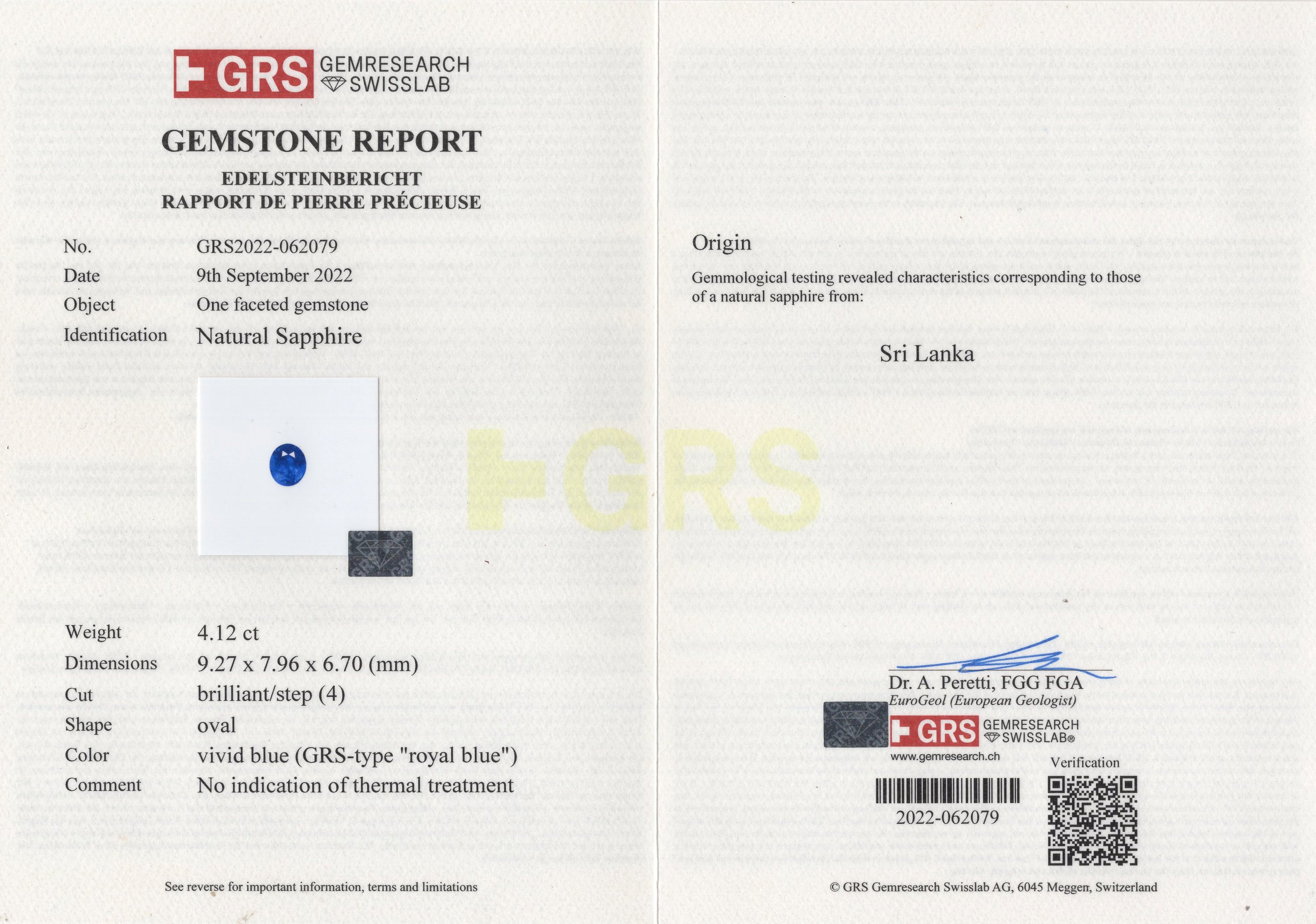 GRS Gem Research Swisslab report # GRS2022-062079