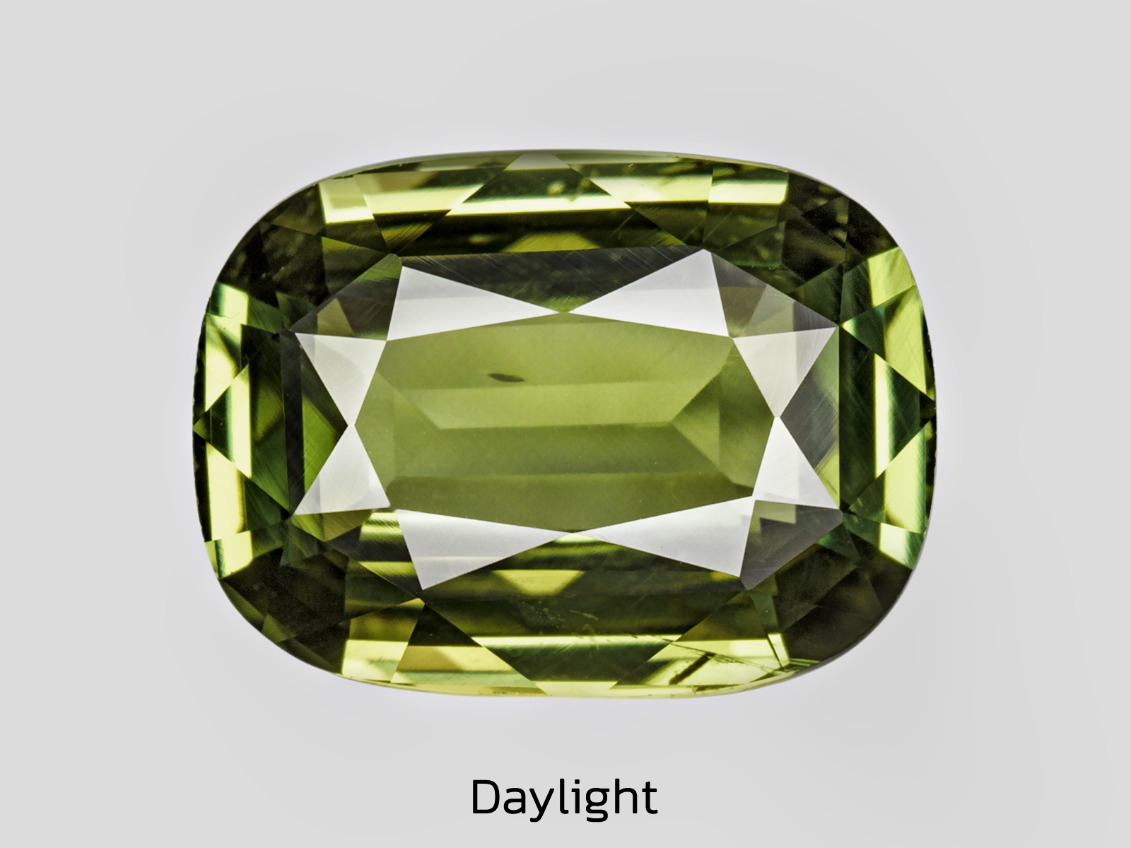 Fluorescence is the visible light some gemstones emit when exposed to invisible ultraviolet (UV) rays. We've described below the intensity and color of the gemstone's fluorescence under long-wave UV light (LWUV). | |