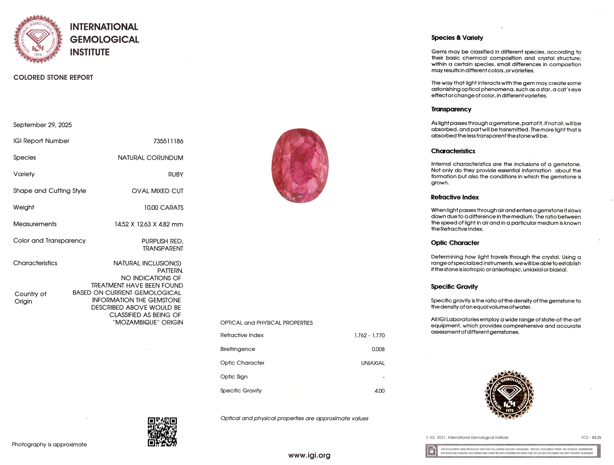This item is accompanied by the following gemological report. We will ship the original report along with the item.